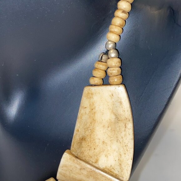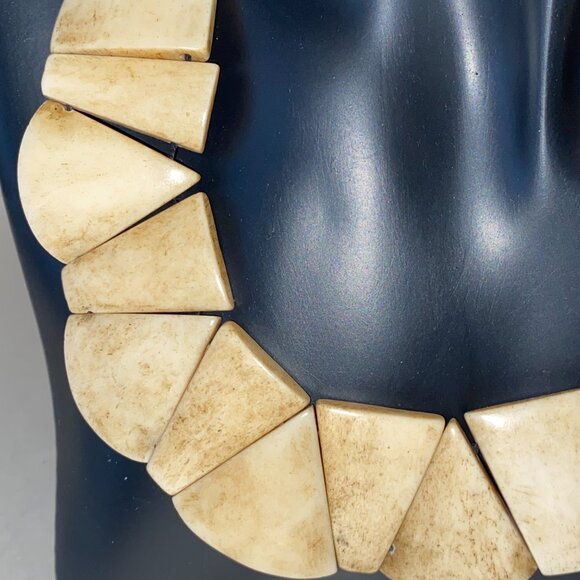 RARE Vintage Handmade Polished Natural Bone Necklace Choker Tribal Boho Eclectic