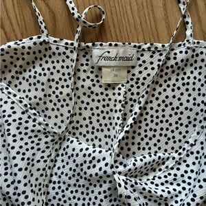 This adorable polkadot mini dress is in great condition. Super cute and trendy. It is also vintage! Size 36 wich is considered a small! Don’t hesitate to ask for measurements!! Made in Canada!