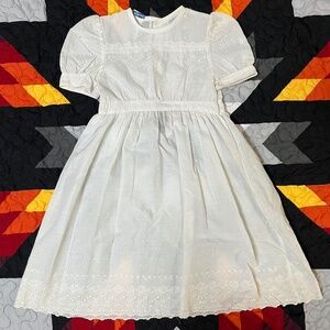 Vintage Polly Flinders girls white summer Sunday dress. Minimal discolouration and spotting can be treated. Excellent vintage condition.