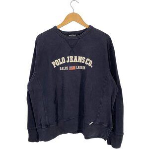 Vintage Polo Jeans Co. Felt Spellout Pullover Crewneck Sweatshirt Navy mens L