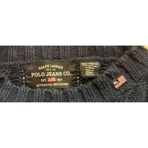 Vintage Polo Jeans Co Sweater Men's XXL Navy Cable Knit Yellow Stripe Cotton RL