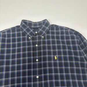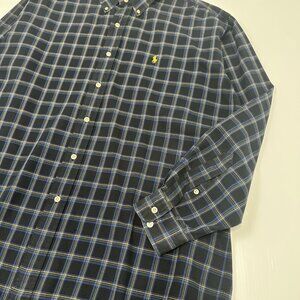 Vintage Polo Ralph Lauren Blake Plaid Button Up Shirt Black and Blue