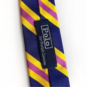 Vintage Polo Ralph Lauren Navy Yellow Pink Stripes 100 % Silk Tie Made In Italy