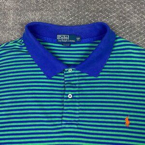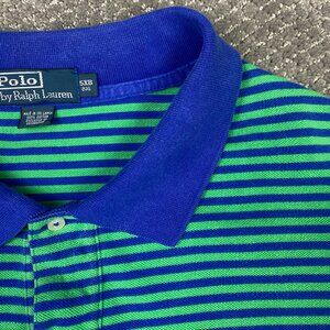 Vintage Polo Ralph Lauren Polo Shirt Men's 5XB Big Blue Green Striped Mesh