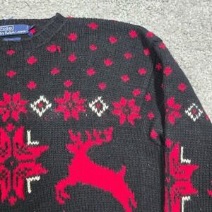 Vintage Polo Ralph Lauren Sweater Mens XL Reindeer Snowflake Hand Knit Wool