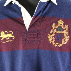 Vintage Polo Rugby Jersey - Blue and Maroon Striped - Men's Medium