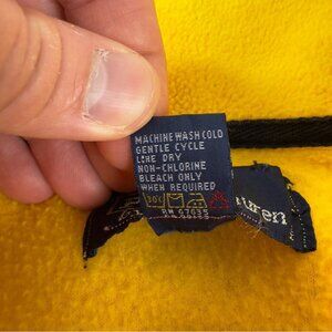 Vintage Polo Sport by Ralph Lauren 1/4 Zip Men's Size XL Yellow/Grey Embroidered in good pre owned condition as shown in the photos with a stain on the left front sleeve, and right front sleeve and there is a stain on the left front below the Grey stripe near the armpit.