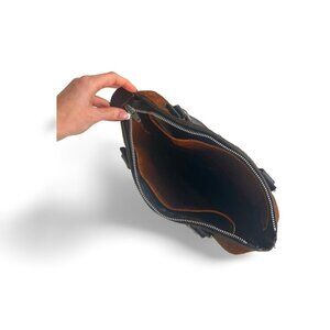 Dark brown leather and real pony hair vintage shoulder bag, no brand tag, looks to be 90s, 2 large interior leather pockets, gold hardware, zipper closure.