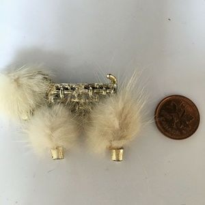 Vintage Poodle Brooch Real Fur Rhinestone Collar & Eye Gold Tone Mid Century 50s