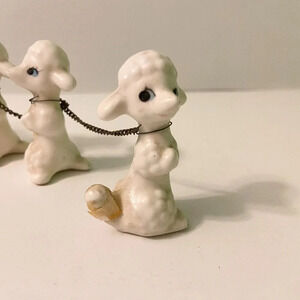 Vintage Poodle Dog Family 4 Pups On Chains Figurine Missing Hair
