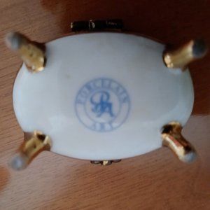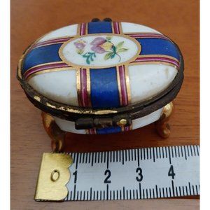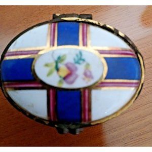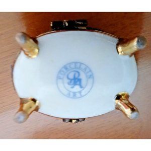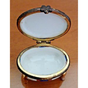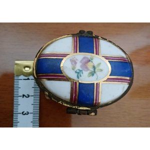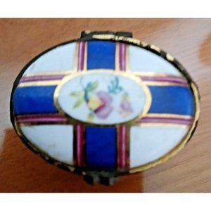 Vintage Porcelain Art Trinket Pill Box Hand Painted Small 2" Marked
