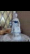Vintage porcelain trinket figurine made in Taiwan, with a beautiful Delft blue style. This barefoot peasant woman and her basket of roses feature magnificent hand-painted details in blue and gold.