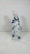 Blue & white porcelain or ceramic figurine with hand painted details. A bit of gold trim and applied flower pattern on skirt.