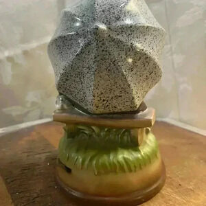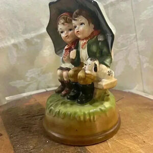 Vintage Porcelain Musical Figurine Tilso Boy Girl Umbrella 6-1/2" High