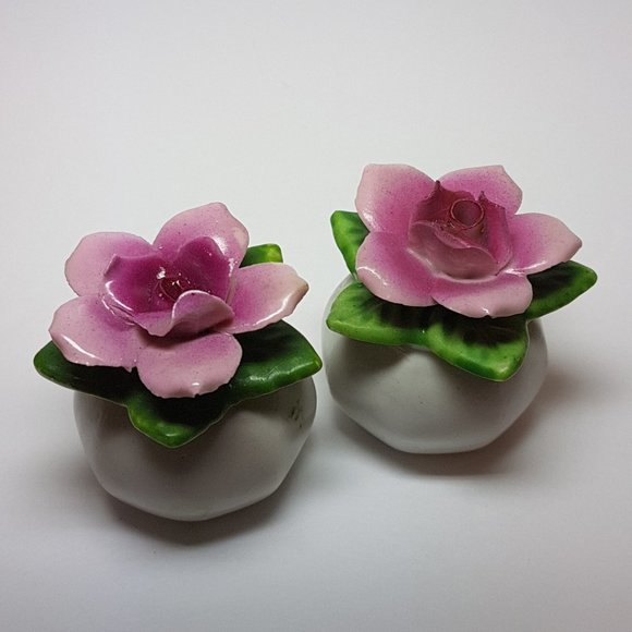 Vintage Porcelain Salt and Pepper Shakers Pink Roses Yellow Roses Flower Floral