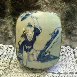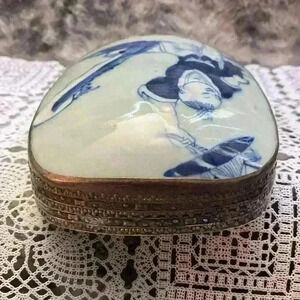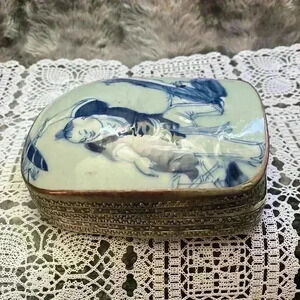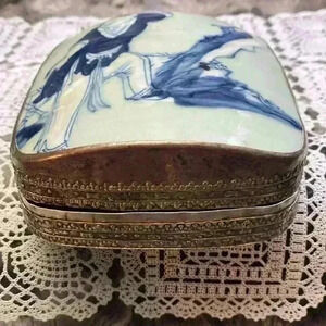 Vintage Porcelain Shard Box/Silver plated copper.