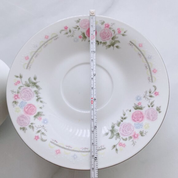 Vintage Porcelain Tea Set Sugar Bowl and Creamer Footed Cup and Saucer Set of 6