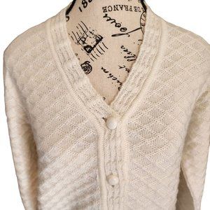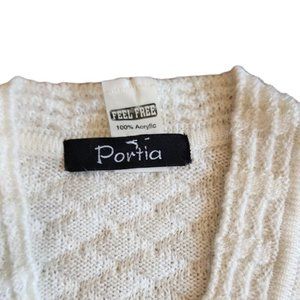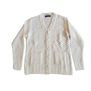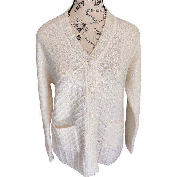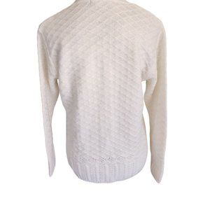 Vintage Portia Sweater Women's Size M White Knit Long Sleeve Button Pockets