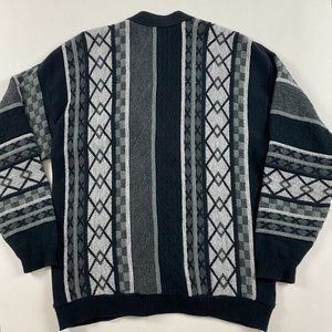 Vintage Porto Bello Textured Cardigan Sweater Mens Medium Biggie Cosby Grunge 3D