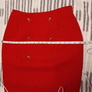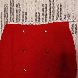 Absolutely stunning vintage vibrant red wool quilted skirt and jacket set by PORTS. In pristine condition. Always dry-cleaned. Gold buttons throughout. Skirt has a side zipper with hook and eye closure. Check photos for measurements as can vintage sizing could differ from modern sizing. Some stretch in the fabric but none in waistband. Colour was difficult to capture but measurement photos are most indicative of true colour. Easily removable shoulder pads.