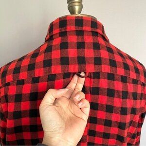 Wool/cotton blend, so not faded like more flannel shirts! Black MOP buttons, made by Ports in Hong Kong, so most likely from the 80s/early 90s.