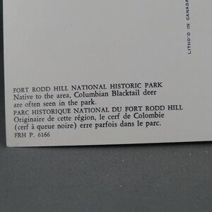 Up for sale is a vintage postcard by Parks Canada. It features an image of deer in front of a building in Fort Rodd Historic park. What a great addition to any colleciton.