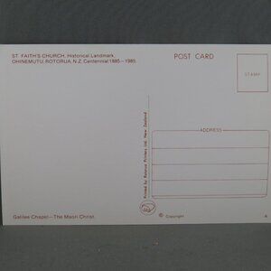 Up for sale is a vintage postcard. It features an image of the St Faith's Church Landmark located in Ohinemuto New Zealand. with an image of the Maori Christ overlaid on the picture. What a great addition to any collection.