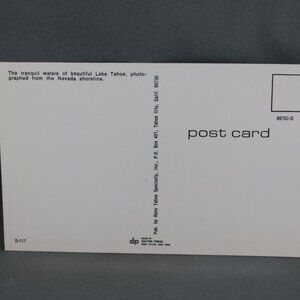 Up for sale is a vintage postcard. It features an image of a very calm Lake Tahoe. What a great addition to any collection.