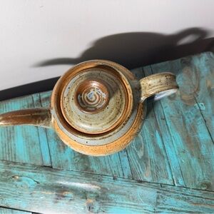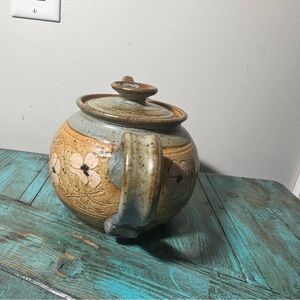 Vintage Pottery Salt Glazed Tea Pot Signed~Floral Design