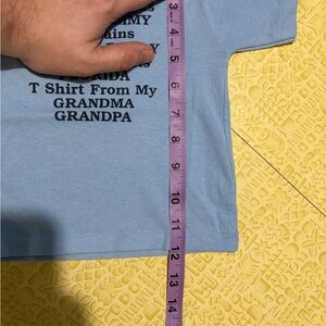 This light blue short sleeve tee features a playful and humorous print on the front, making it a fun addition to any casual wardrobe. Crafted from soft, cotton-like material, it offers comfort and style in a simple design.