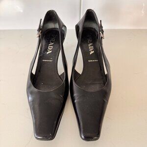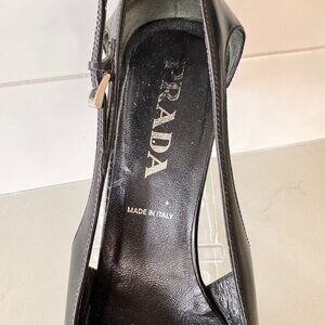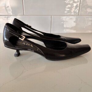 Vintage Prada Women’s Black Leather Slingback Kitten Heels