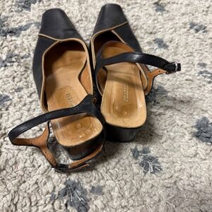 Vintage Pratesi Black Leather Block Italy Artisan Heel Slingback Sandals Size 39