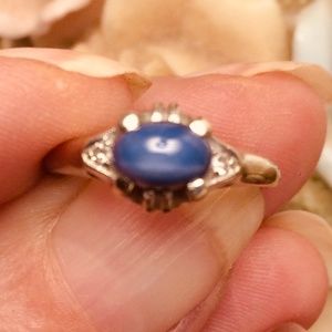 Vintage Precious Star Sapphire gem, set in 10K white gold, size 5 1/2 appx.