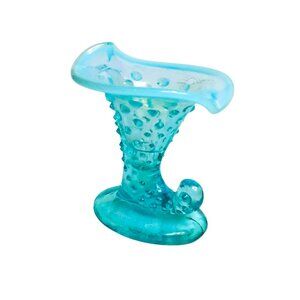 Vintage Pre-logo Fenton-Blue Opalescent Hobnail Mini Cornucopia Candleholder