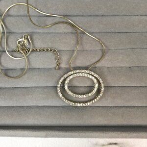 Vintage Premier Designs Rhinestone Oval Dangle Pendant Adjustable Necklace