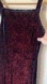 Vintage Premiere Collection Women’s size small dress. Sleeveless, long, with a side split on the left side. Material is a red with black velvet on top so it looks iridescent with those two colours. This dress gives me vampire goth vibes. It’s very neat. Only flaw I could see is the one strap seems to be sewn not on the end of the fabric (pictured).