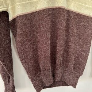 Most likely originally a man’s sweater, can fit a men’s small and a women’s small/medium