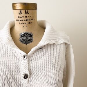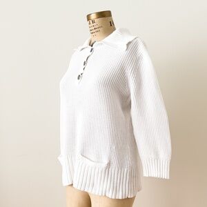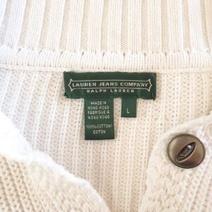 Vintage Preppy Y2K Lauren Jeans Company Ralph Lauren White Cotton Knit Sweater L