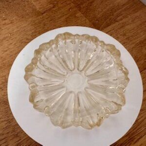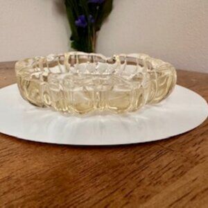 Vintage Pressed Glass Ashtray Clear Ribbed Round Midcentury Modern Retro Home De