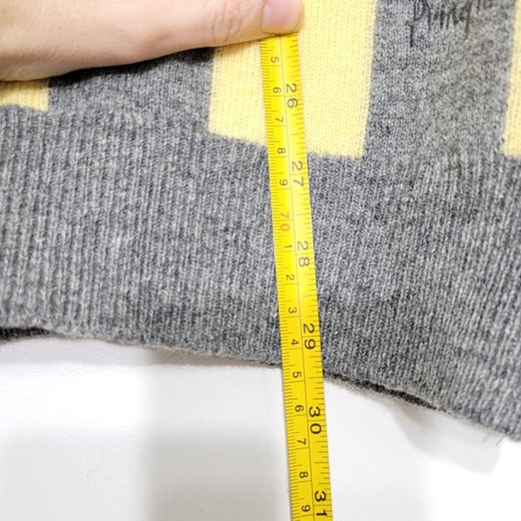 Pringle Vintage Men's Yellow Gray Geometric Strips Grandpa 100% Pure LambsWool V-Neckline Retro Scotland Comfy Pullover Cottagecore Cozy