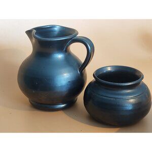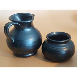 Vintage Prinknash England Stoneware Antique Black Sugar Bowl & Creamer Set