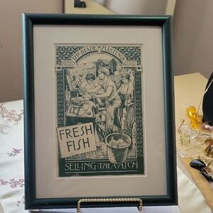 It is in good condition with no cracks or repairs. The black wood frame does have some scuff marks along the edges.
