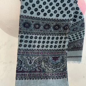 Vintage Printed Scarf (one side only) in Blue w Purple Accents no tags