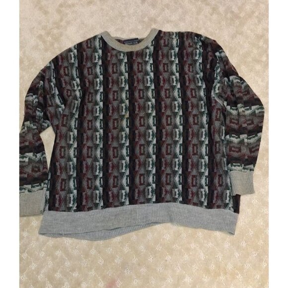 Vintage Private Club Sweater Mens 2X XXL Coogi Style Textured Knit Stripe 90s