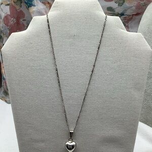 Vintage Puffy Heart Sterling Silver Pendant Necklace