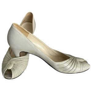 Elegant pumps by Evins in a light grey colour Grey . The Soft leather, peep toe and 3" heel add a touch of elegance and sophistication to go with many piece in your wardrobe .