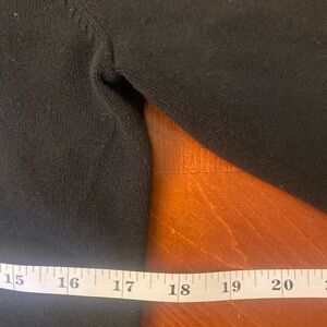 Vintage Dark Academia Alfred Sung Women’s Black Crew Neck Cardigan with Ruffled Collar and black ‘Pearl’ buttons.