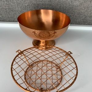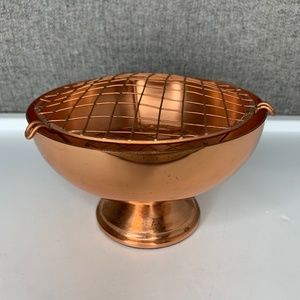 Vintage Pure Copper Round Pedestal Dish Bowl with Grill Grate Handmade in Irelan