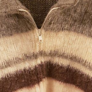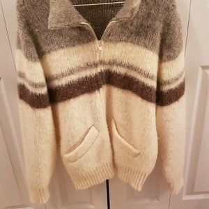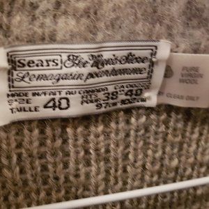 This is a 100% pure virgin wool sweater made in Canada in the late 1970s. It was designed for men by the Sears department store and fits sizes 38-40 (approx XL in modern-day women's sizing). It has a zipper closure in the front, two cosy pockets and is unbelievably warm. This sweater was hardly worn - it doesn't have any holes, stretching, stains or signs of wear. It's very well preserved for 50 years old! Get cosy!