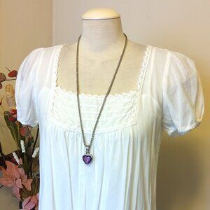 Vintage Purple Cracked Crystal Heart Silver Pendant Silver Tone Long Necklace Timeless VTG Pendant Jewelry for Tops, Dresses, Sweaters